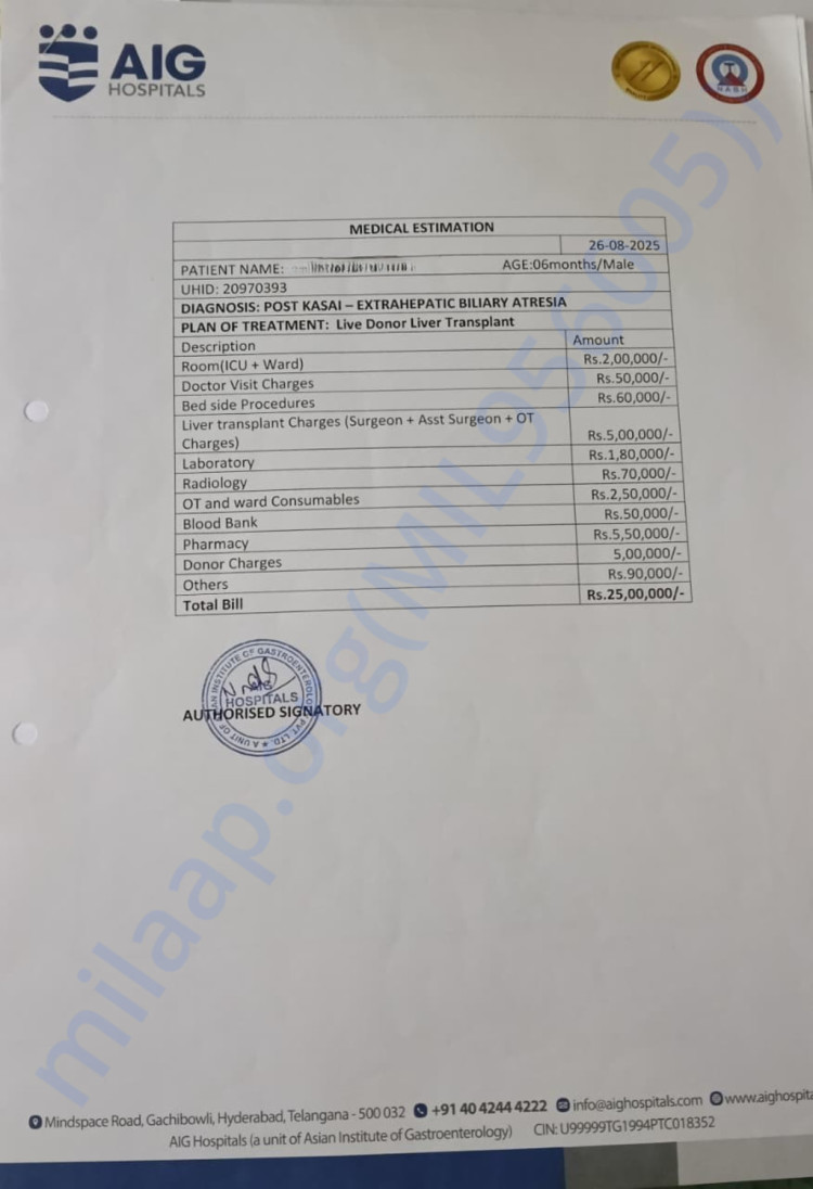 His fever has been reaching 103 degrees, his little stomach fills painfully with fluid, and doctors now have to remove the collection through repeated procedures just to give him temporary relief. He cries in his sleep, restless and weak. I cannot describe the helplessness of watching him suffer when I cannot ease his pain. The doctors have told me clearly that the only option left is a liver transplant.Without it, my son’s life cannot be saved.