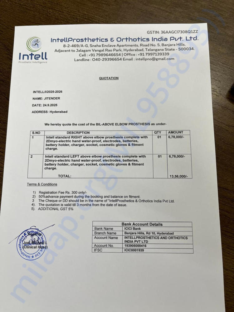 Being treated in Intell Prosthetic & Orthotic Clinic, Hyderabad, Telangana
